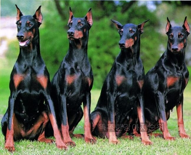 똑똑한강아지순위 5위에 오른 이 견종은 19세기말에 루이스 도베르만이 자신을 지키는 경호견으로 만든 견종이라고 하는데요.
