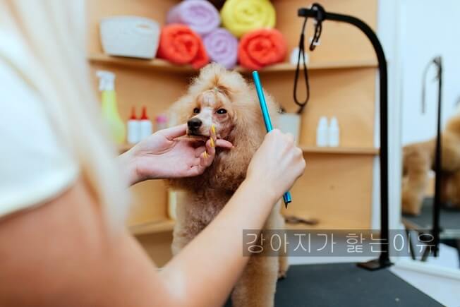이는 자신의 털이 갑자기 짧아진것에 대해 불편한 감정이나 불안한 감정을 느껴서 나오는 행동이라고 해요.