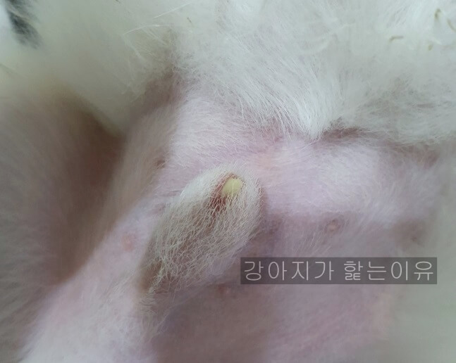 이는 스스로 청결을 유지하기 위해서 핥았던 과정이나 산책했을 때 세균감염에 의해서 생길 수 있다고 하네요.