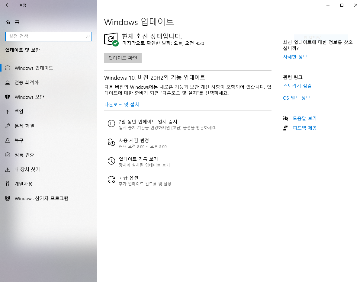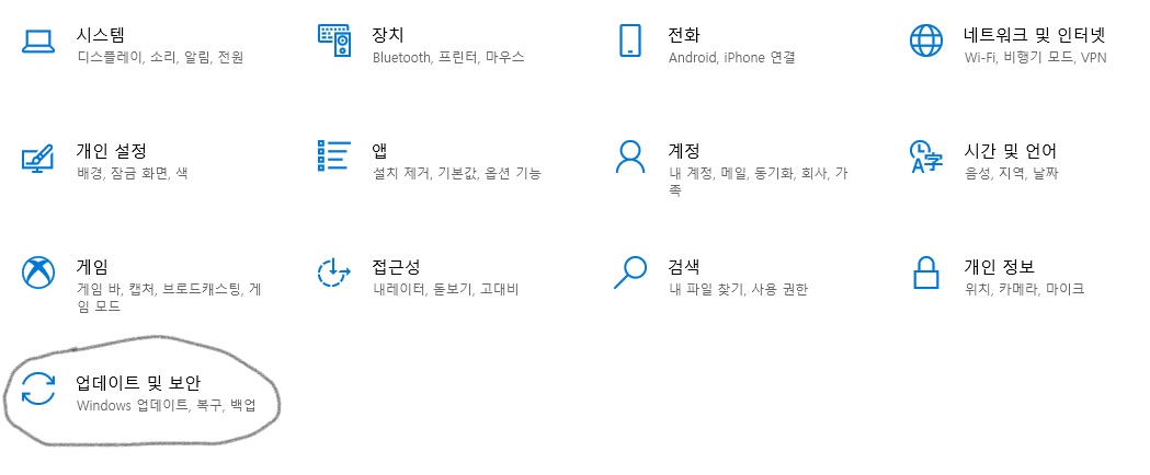 2. 업데이트 및 보안을 누르세요.