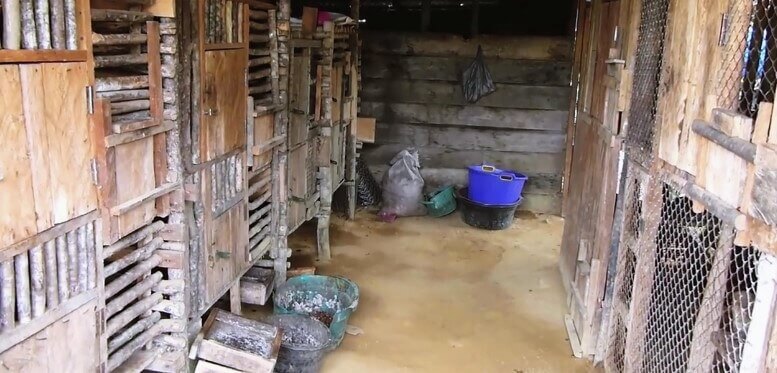 겹겹이 쌓아올린 작은 철창들로 이뤄진 이 농장에는 사향고양이 수백 마리가 갇혀있다.