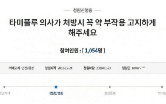실제로 불과 작년에 타미플루의 규제를 강화해달라는 국민청원이 등장했고, 소수지만 타미플루의 부작용을 경험한 부모님들과 기자님들이 인터넷에 글을 올리는 것을 심심치 않게 보실 수 있습니다.