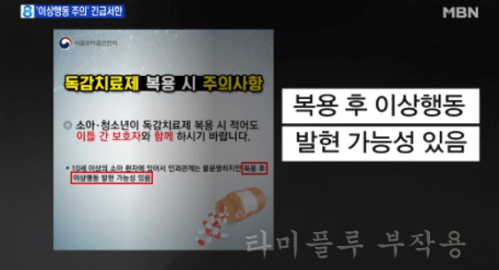 부천에서 타미플루를 복용한 14살 남학생이 "환청증세가 있다." 라고 호소를 하다가 6층에서 투신하는 사고가 있었고, 2014년에는 13살의 남학생이, 2016년에는 11살의 남자아이가 이 약을 복용한 이후에 추락사하는 아주 안타까운 일들이 계속 이어지고 있었습니다.