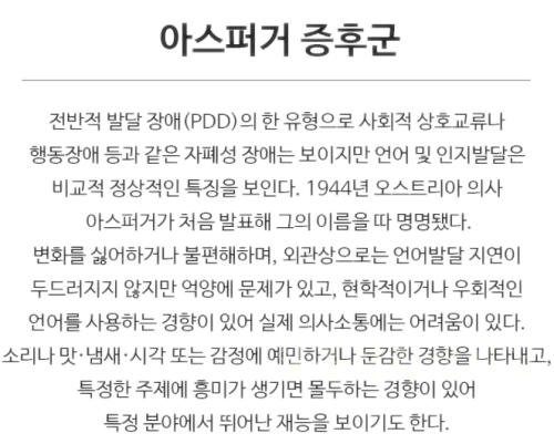 아스퍼거 증후군이라는 것은 발달장애의 일종이고 자폐증의 한 형태라고 볼 수 있습니다.