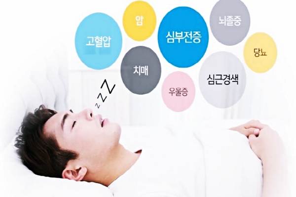 수면무호흡증을 동반한 코골이의 경우 뇌와 심장에 산소가 공급되지 않아 부담을 줘 뇌출혈,뇌졸증,치매,파킨슨병 등 뇌혈관질환,고혈압,협싱증,심근경색 등 심혈관질환에 노출될 수 있기 때문에 더덕욱 주의하셔야 합니다.