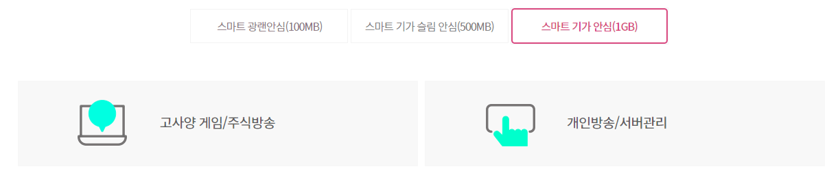 3) 스마트 기가안심 (1G ) - 고사양게임, 1인트리에이터분, 느린것을 참지 못하시는 분.