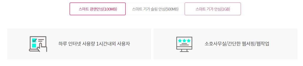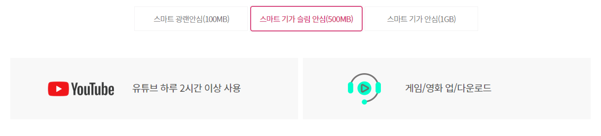 2) 스마트 기가슬림안심 (500M) - 너튜브 & 게임용.