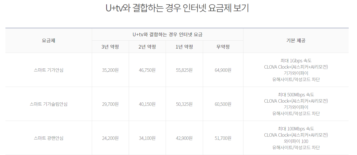 저는,, 더 빠른것으로 바꾸고 싶었기 때문에 제일 빠른 요금제인 스마트 기가안심으로 인터넷신규신청가입을 했어요!! :)