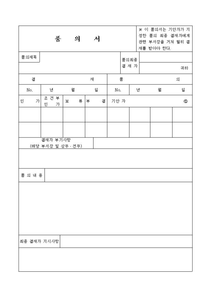 이를 위해서는 품의서 양식을 사용해서 미리 규정되어 있는 절차를 밟은 후에 실행하게 됩니다.