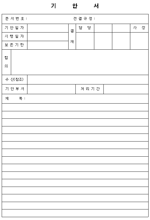 기안서는 품의서보다는 좀 더 포괄적인 의미로 주로 업무상의 어떠한 안건을 결재 받기 위해 작성하는 문서입니다.