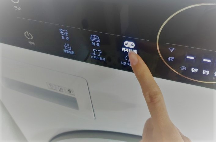 세탁기에 보시면은 "울코스"라는 적혀있어요!