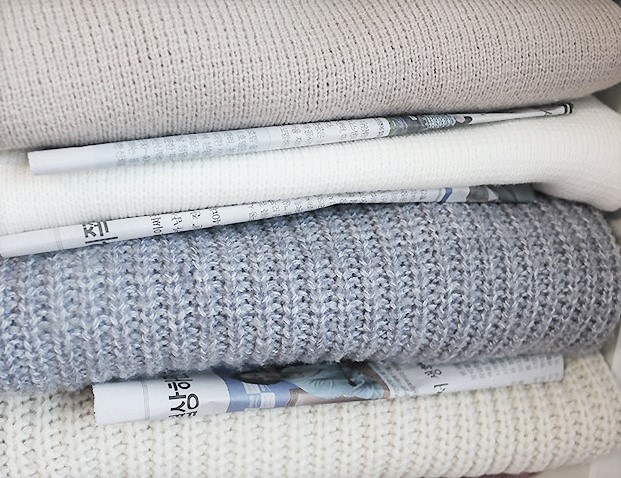서랍에 수납할땐 신문지나 종이를 깔아 둥글게 니트를 말아 통풍이 잘되는 곳에 보관하면 습기를 흡수하여