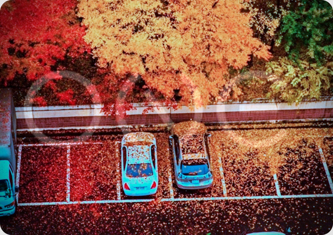 네 번째, 도로와 자동차에 쌓인 낙엽 조심하기!!!