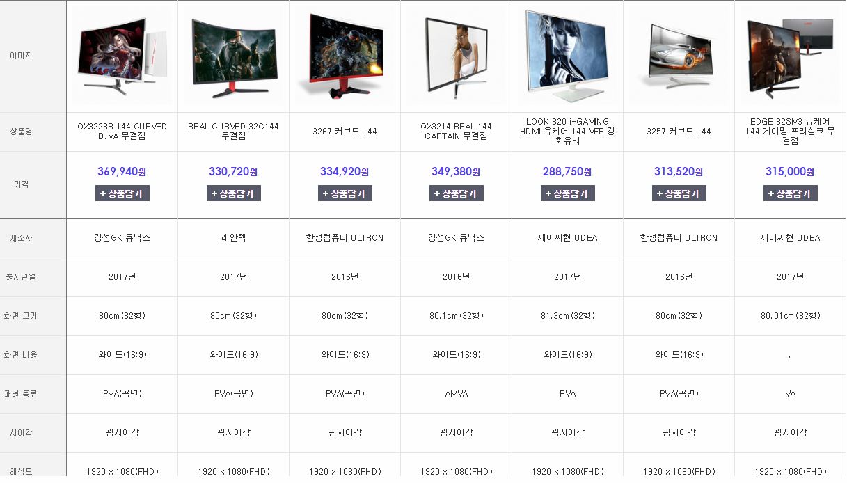 패널형태는 32인치 이상 커브드 모니터가 강점이 있긴합니다.