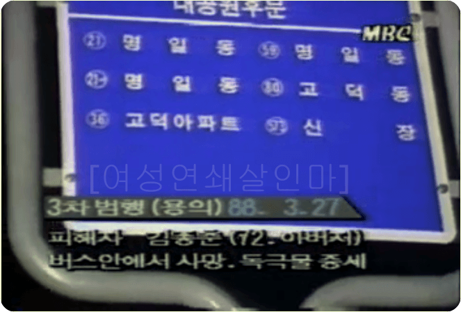이렇게 온 나라가 축제분위기였을때, 서울에서는 전대미문의 여성연쇄살인마의 연쇄독살살인사건이 시작됩니다.