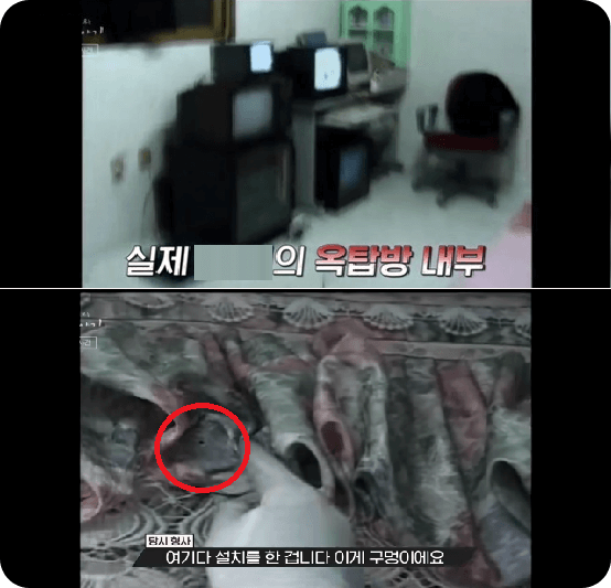형사들은 그 날 임씨의 집을 압수수색하기 시작했습니다. 임씨의 옥탑방 문을 열어보니, 방 한쪽엔 모니터 여러 대가 놓여져 있었습니다.