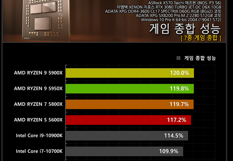 FHD에서나 차이가 조금있을뿐 4K로 가면 없는수준이고 5600X보다 더 높은수치를 기록했다고는 합니다.
