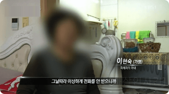 이 시간때쯤이면 이미 집에 들어왔어도 한참 전에 들어왔어야 할 남편이 아직까지도 집에 들어오지 않았다는 생각에 순간 굉장히 안좋은 느낌이 들었다고 합니다.
