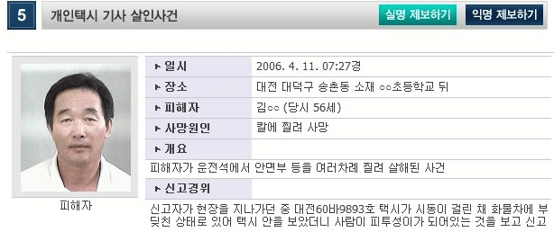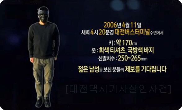 오늘은 이렇게 2006년 대전에서 일어났던 대전 택시기사살인사건 이야기를 가져왔습니다.