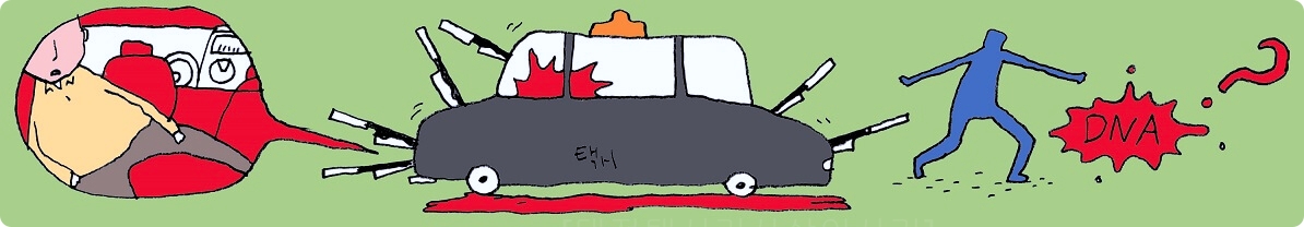 거기다가 이 좁은 택시 안은 천장에서부터 문까지 온통 피로 물들어 있었습니다.