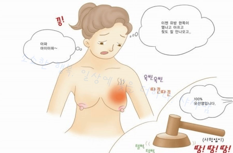 *유선염- 한쪽 혹은 양쪽의 유방 조직에 통증을 동반한 염증이 심하게 생기는것.