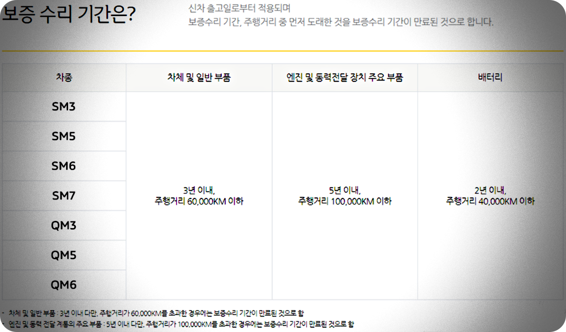 중고차의 경우 다 그렇다는 건 아니지만 혹여 딜러에게 속아 차를 잘못 샀거나 연식이 오래되어 잔고장이 나게된다면 이를 감당해야 하는 수리비도 만만치 않게 들어가게 되는데 신차로 구매를 하실게 되면, 무상보증기간이 있기 때문에 혹시 문제가 있는 차량을 구입하게 되더라도 일정 기간 동안 무상 수리가 가능 합니다. 그렇기 때문에 사고 나서 문제가 생기더라도 수리비를 내지 않고 차량을 관리 할 수 있게됩니다.
