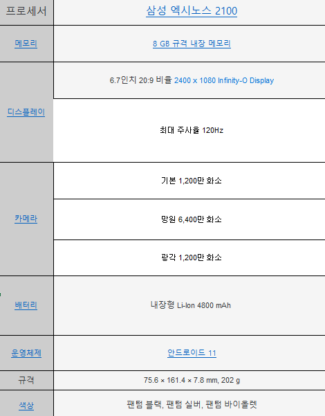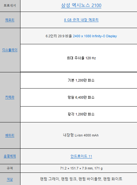 일단 갤럭시S21의 기본스펙은 대충 이렇습니다.