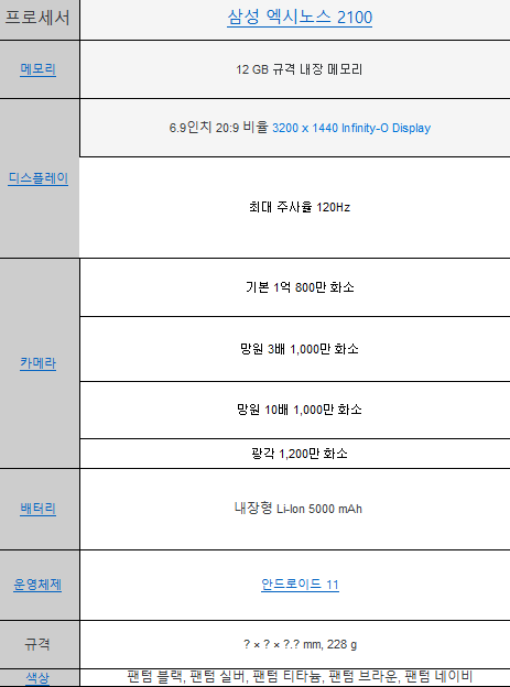 미국을 제외한 모든시장에서는 모두 엑시노스 2100이 탑재가 된다고합니다.