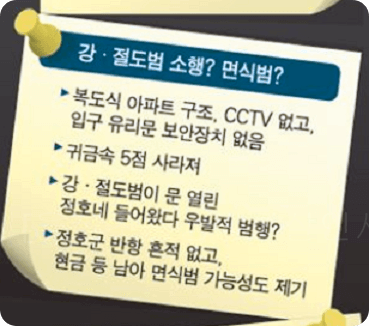 범인은 왜 현관문까지 잠그고 나갔던 것일까요?
