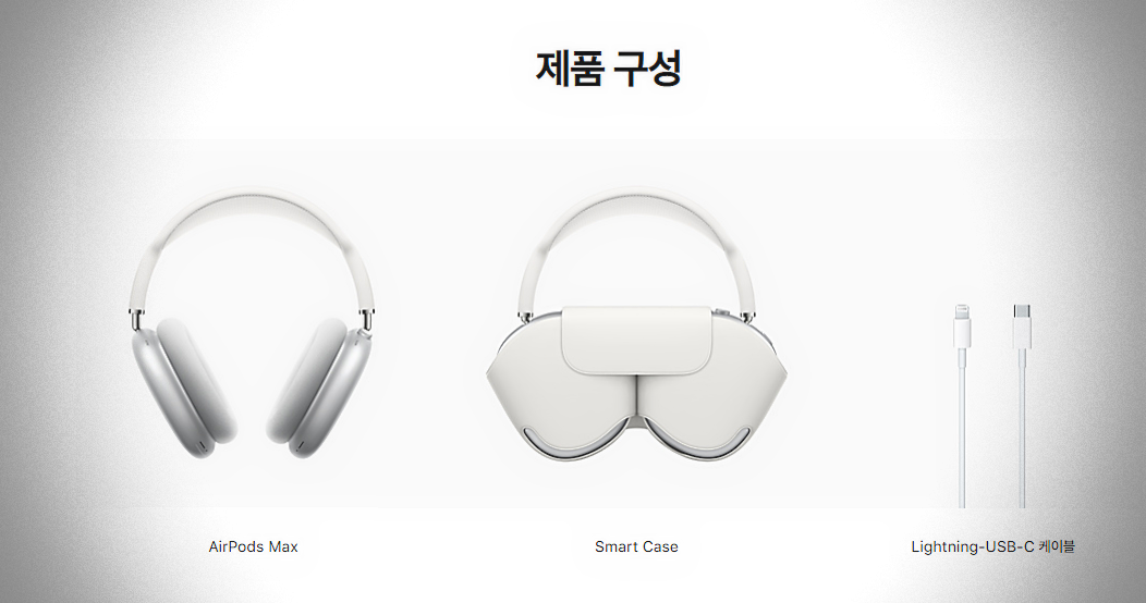 구성품으로는 에어팟맥스, 스마트케이스, 충전기가 포함되어있네요.