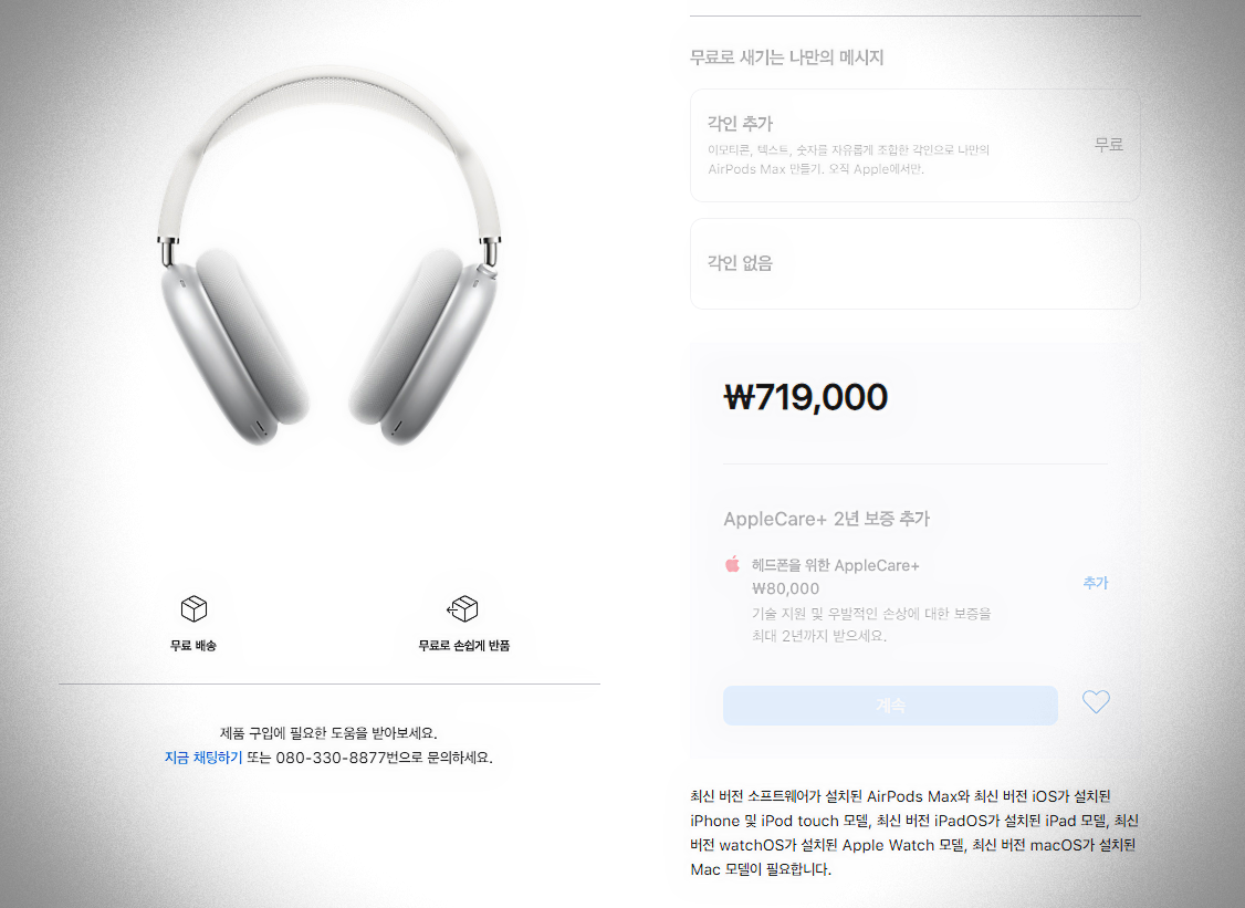 그래도 에어팟맥스는 이어폰보다는 커다란 헤드셋이라 그런지는 몰라도 5가지면 적은색상은 아니네요.