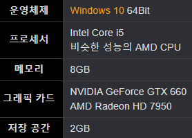 뭐 물론 저런게임이 어떻게 사양이 높을수가 있냐 라고 하실분이 많겟습니다만 들어가는 사람의 양인지는 모르겠지만 메모리는 좀 많이 필요하네요.