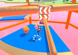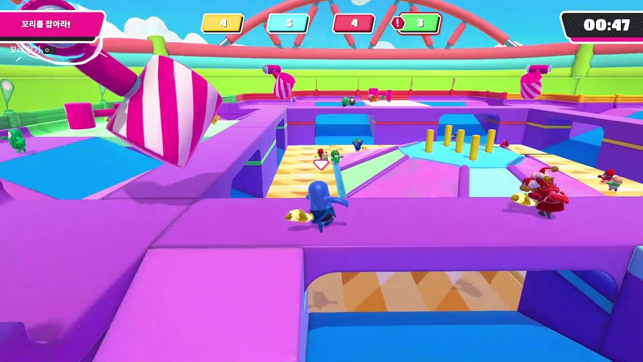 아시는분들은 아시겠지만 아무리 조작이 쉬워도 폴가이즈 특유의 뒤뚱거리는 걸음걸이때문에 약간만 건들여도 넘어지는 웃음은나지만 좀 빡치는 상황이 연출되죠.